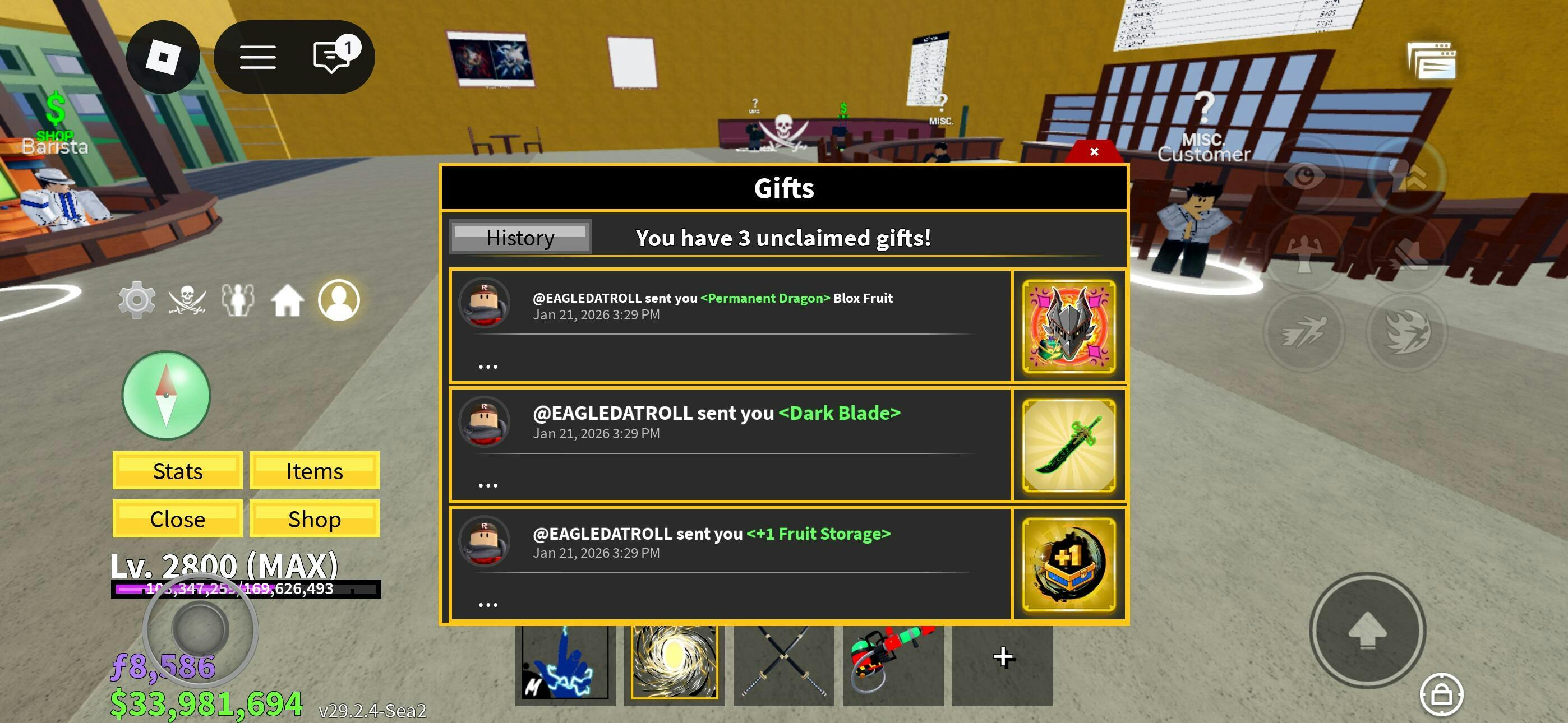 الحساب ولا غلطه بس مشكلته السيوف مو كثير و مافيه ولا سلاح و موماكل فاكهة بس حلو